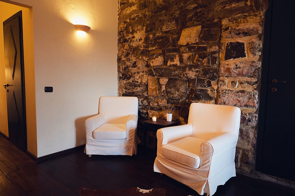 Caratterizzata da una parete di pietra, dispone di bagno indipendente con doccia.
